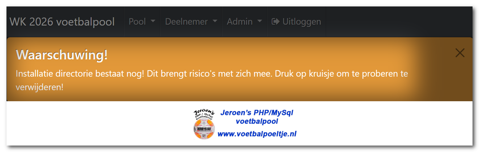 Indien de installatie gelukt is, verwijder of hernoem dan de map Install naar bijv. niet_meer_gebruiken_Install,
