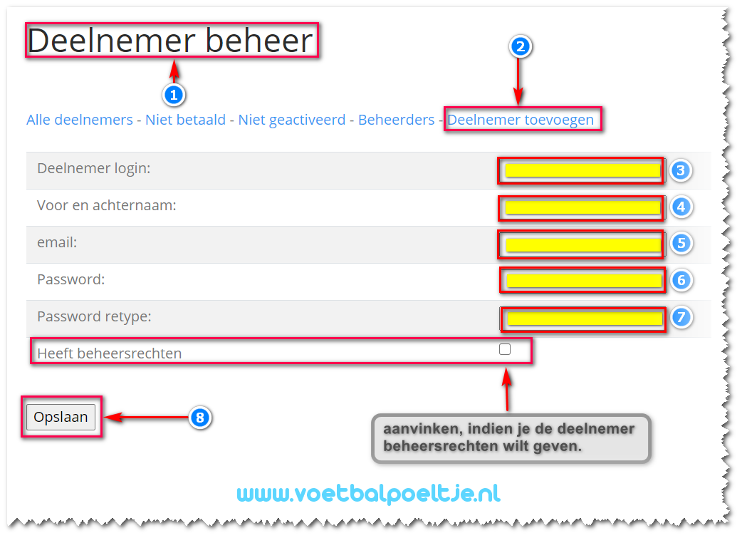 Een deelnemer kan ten alle tijden door de beheerder van de pool worden toegevoegd. De deelnemer is direct geactiveerd.
