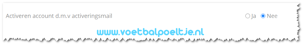 Indien b.v. de mailfunctionaliteit van de pool niet werkend is te krijgen kan bij de poolinstellingen worden gekozen dat activering door een activerings-mail is uitgeschakeld: